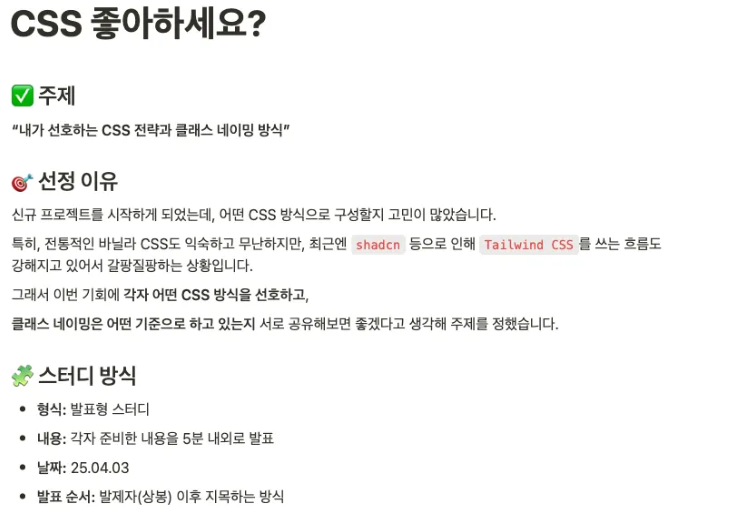 이번 스터디 주제를 통해 CSS 전략을 고민해보는 시간이 되어서 좋았다.
