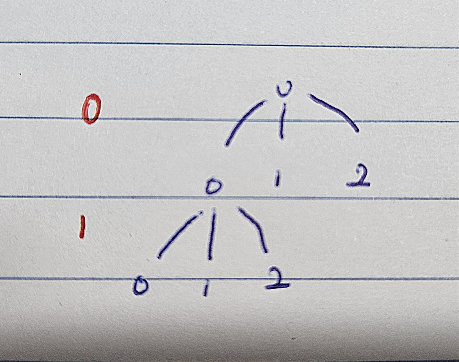 0, 1이 집합의 길이이고, 0, 1, 2가 각각의 원소이다.