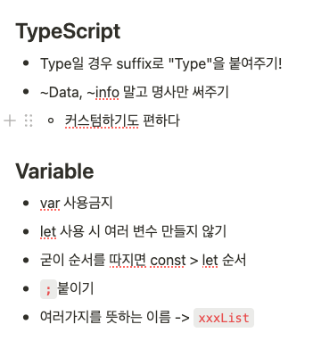- 네이밍 컨벤션 일관성 있게 유지