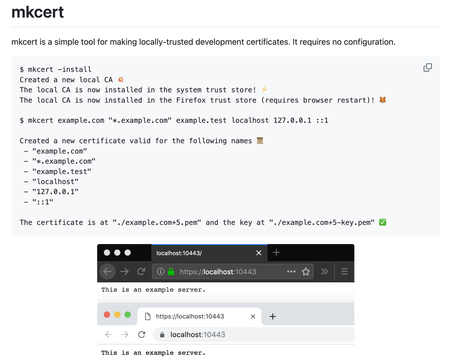 mkcert는 로컬 개발 환경에서 HTTPS를 간단하게 구성할 수 있도록 도와주는 도구이다.