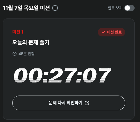 | [99클럽] 코딩테스트 스터디, 7일차 TIL - 비기너 (0) | 2024.11.04 |