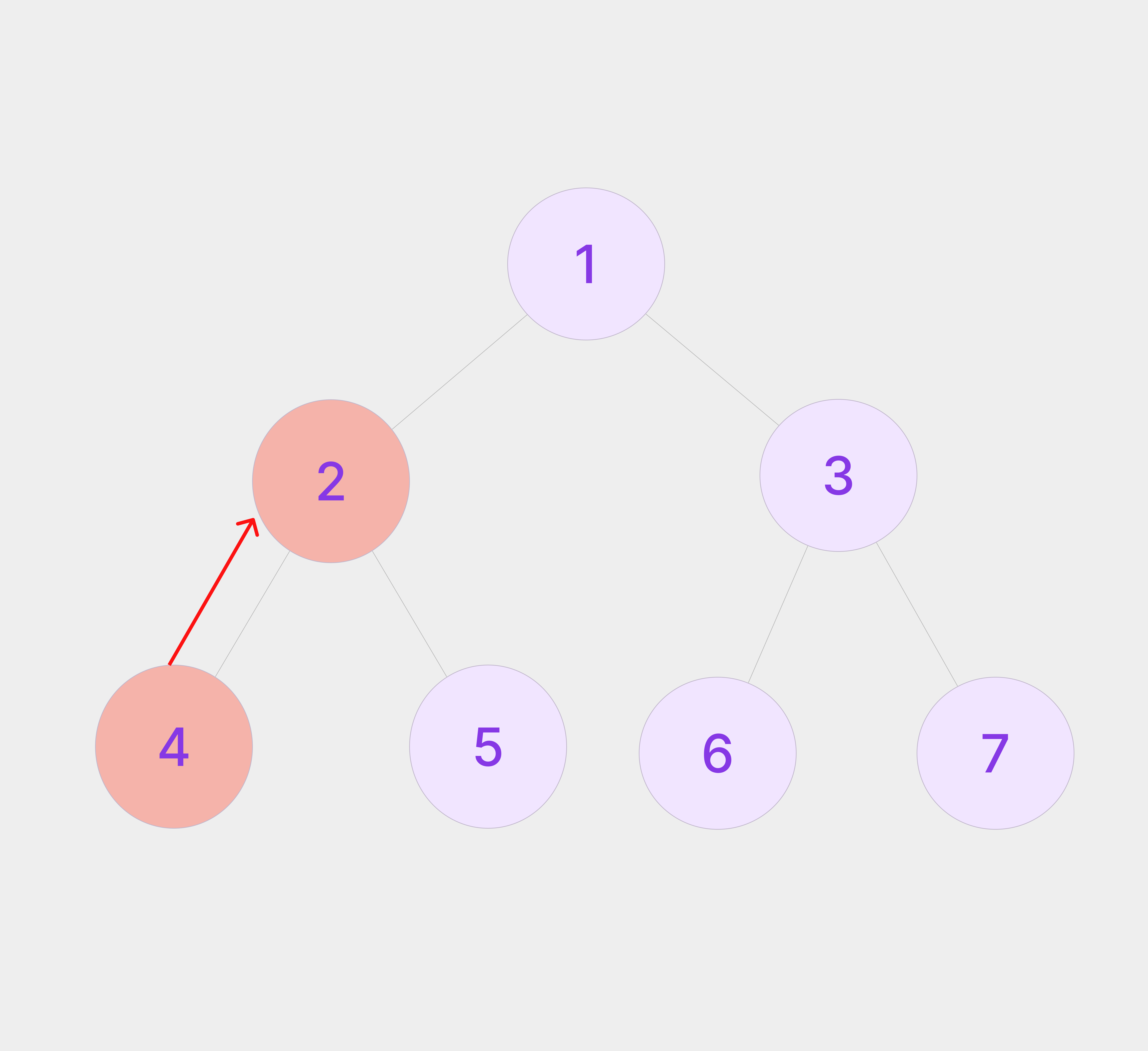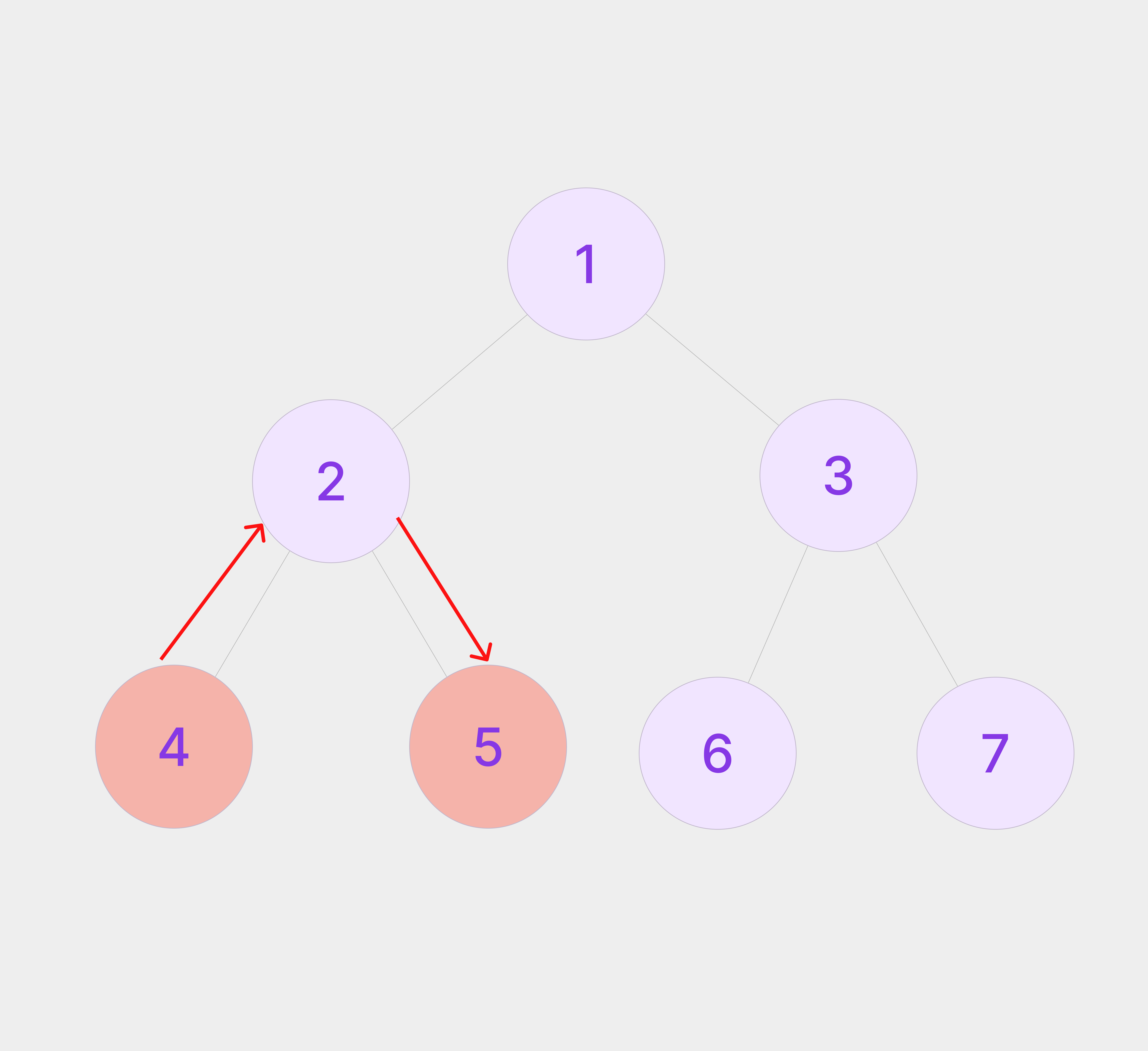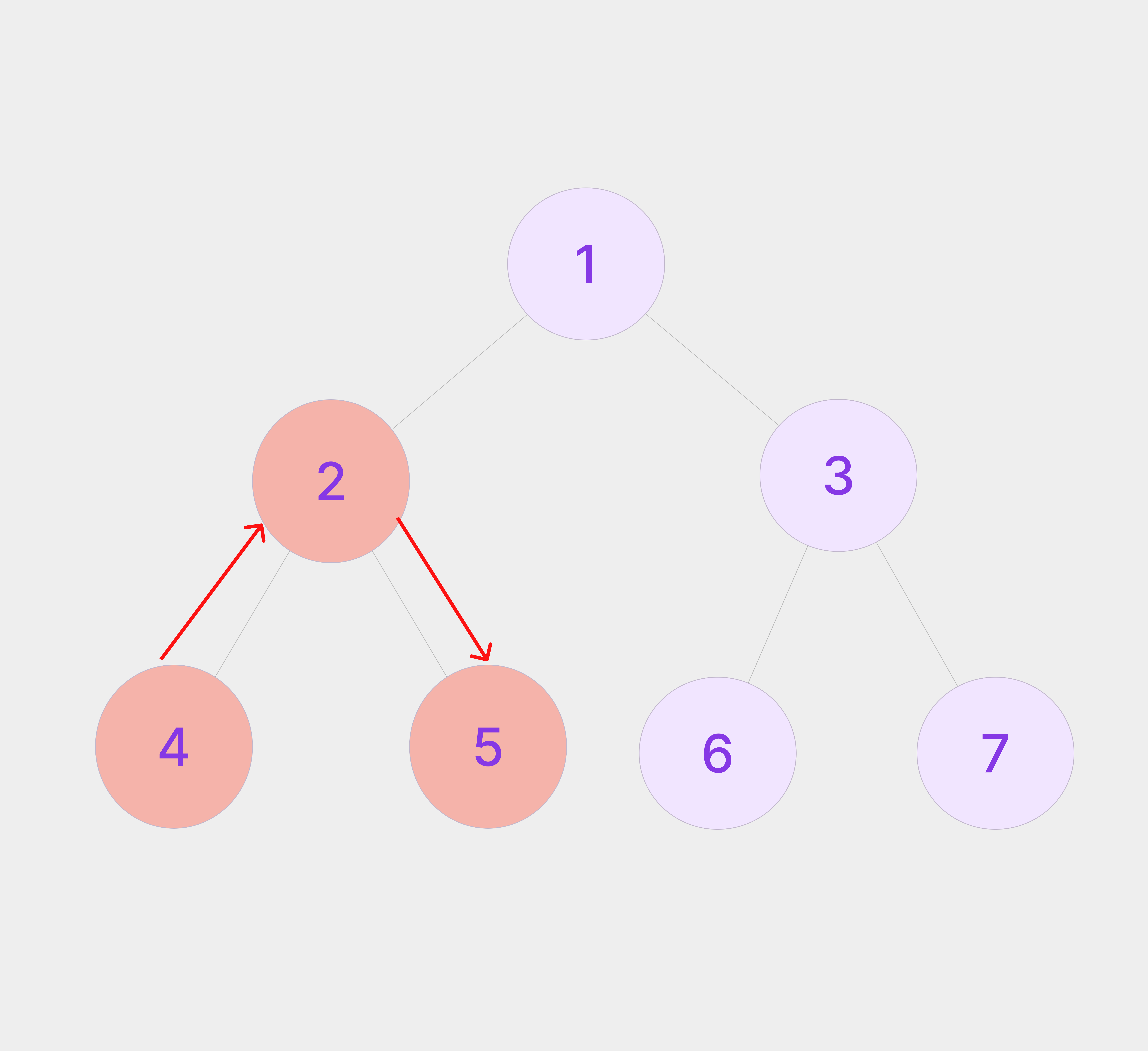 그 후 4번 노드의 부모 노드로 올라와서 2번 노드를 탐색한다.