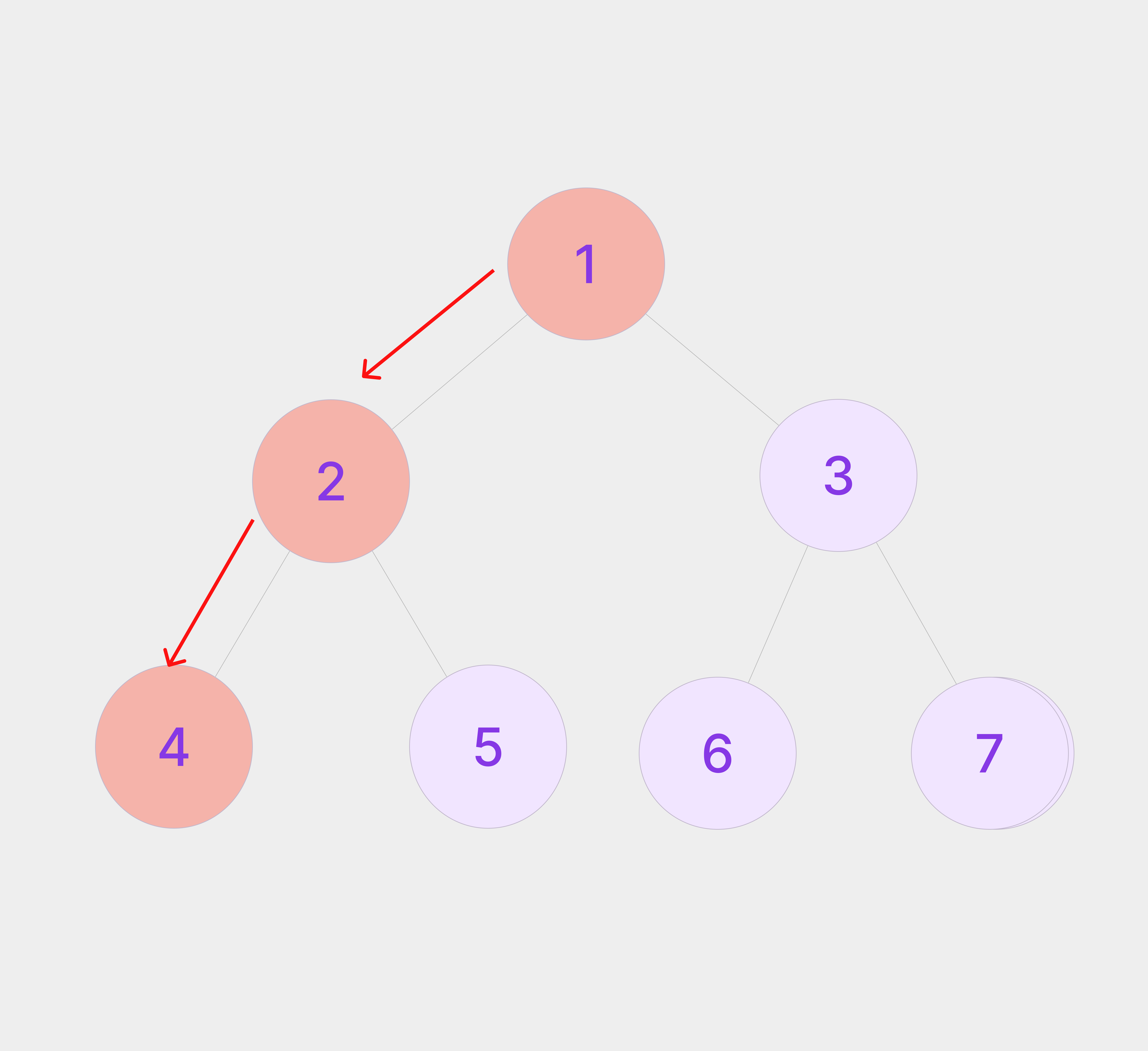 또다시 왼쪽 아래로 내려가서 4번 노드를 탐색해 준다.