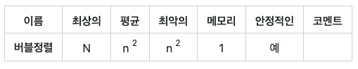 버블정렬은 인접한 항목의 각 쌍을 비교하여 순서를 정렬하는 알고리즘이다.