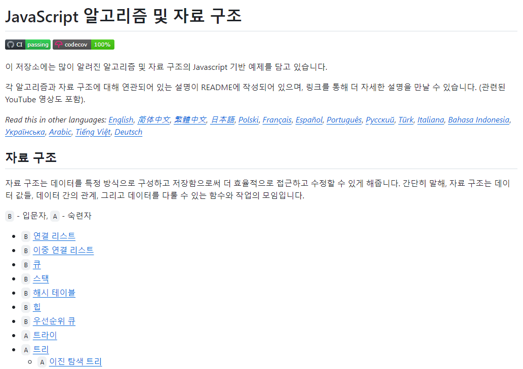 https://github.com/trekhleb/javascript-algorithms/blob/master/README.ko-KR.md