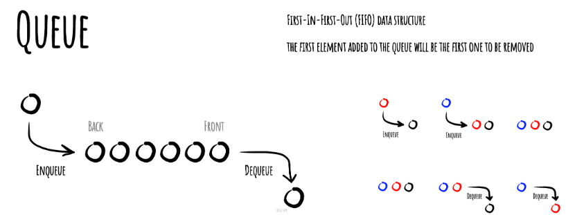 스택(stack)과 달리 제일 처음 들어간 데이터가 가장 먼저 나온다.