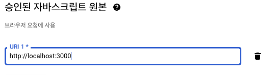 여기서 이름을 적어주고, 승인된 자바스크립트 원본에 URI 추가를 눌러 사용할 브라우저 주소를 적어준다.