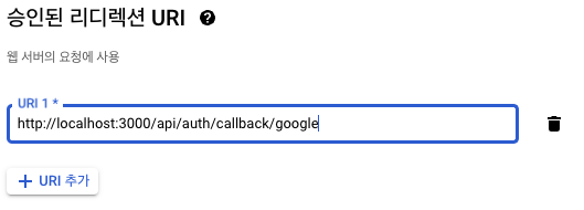 http://localhost:3000/api/auth/callback/google 를 적어주면 된다.